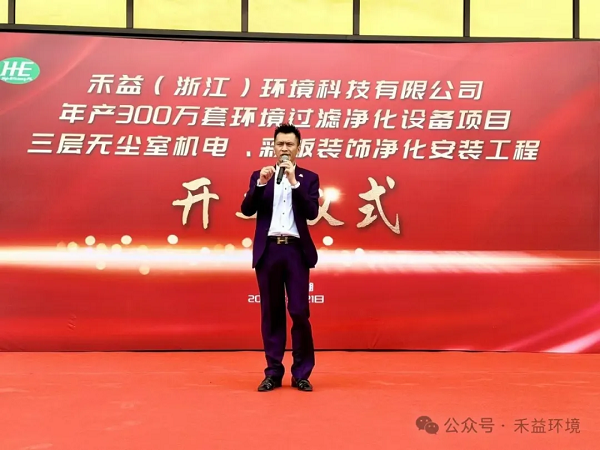 在热烈的氛围中,主持人登台介绍来宾,并邀请禾益集团总经理陈满意上台致辞。他表示,禾益集团自成立以来,一直致力于净化设备制造技术的研发与创新,此次项目的开工是公司发展历程中一个重要的里程碑。通过建立技术研发中心,禾益集团将拥有更强大的创新力量和技术优势。